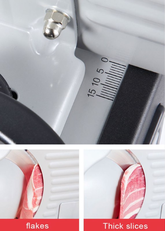 SOKANY SK-446 CORTADORA DE ALIMENTOS ELÉCTRICA BAJO NIVEL DE RUIDO,190MM DE DIÁMETRO,HOJA DE ACERO INOXIDABLE,CON PROTECCIÓN PARA LOS DEDOS,INTERRUPTOR ÚNICO CON PROTECTOR DE CUCHILLO,AJUSTE DE FINO A GRUESO,DE 0 A 15MM,EMPUJADOR DE ALIMENTOS TRANSPARENTE CON PROTECTOR DE SEGURIDAD PARA VER,ANTIDESLIZANTE