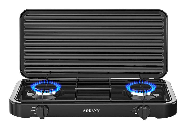 MAQUINA ESTUFA DE GAS DE 2 HORNILLAS DE FACIL ALMACENAMIENTO FACIL DE USAR 4.4KW FUERZA SOKANY SK-6002
