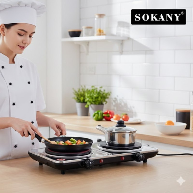 SOKANY ESTUFA ELECTRICA SK-5102 OPERACIÓN SENCILLA,GRAN POTENCIA DE FUEGO,2000W DE FUERZA DE 2 HORNILLAS