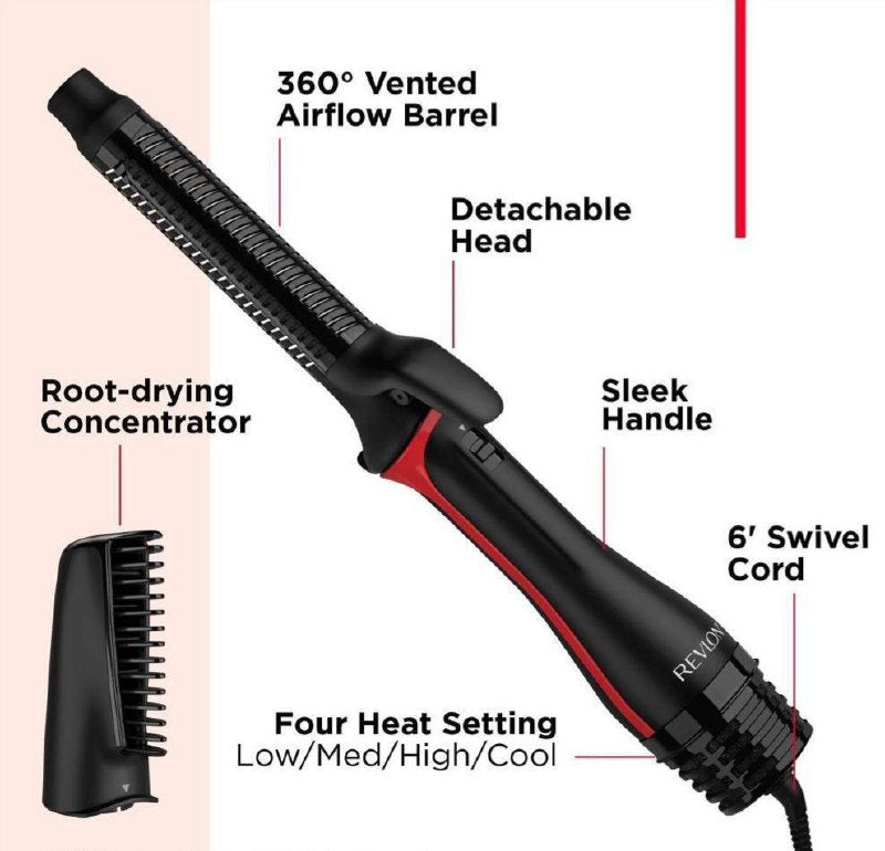 REVLON RIZADOR DE CABELLO RIZOS CON SECADO EN UN SOLO PASO ONE-STEP BLOWOUT CURLS, RIZOS DE EXPLOSION DE UN SOLO PASO, SE SECA EN UN SOLO PASO, SECA EL CABELLO MIENTRAS SE RIZA, ESTILO CON MENOS DAÑO, AIRE CALIENTE PARA MAYOR SUAVIDAD PARA EL CABELLO, INCLUYE CONCENTRADOR DE SECADO DE RAIZ, REDUCE EL TIEMPO DE SECADO Y PREPARA EL CABELLO PARA EL RIZADO